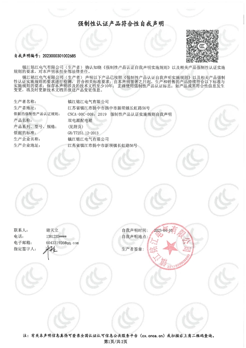 GGD強制性認(rèn)證產(chǎn)品聲明