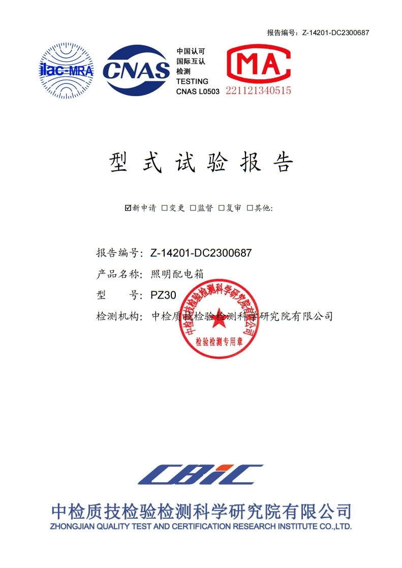 PZ30照明配電箱試驗報告