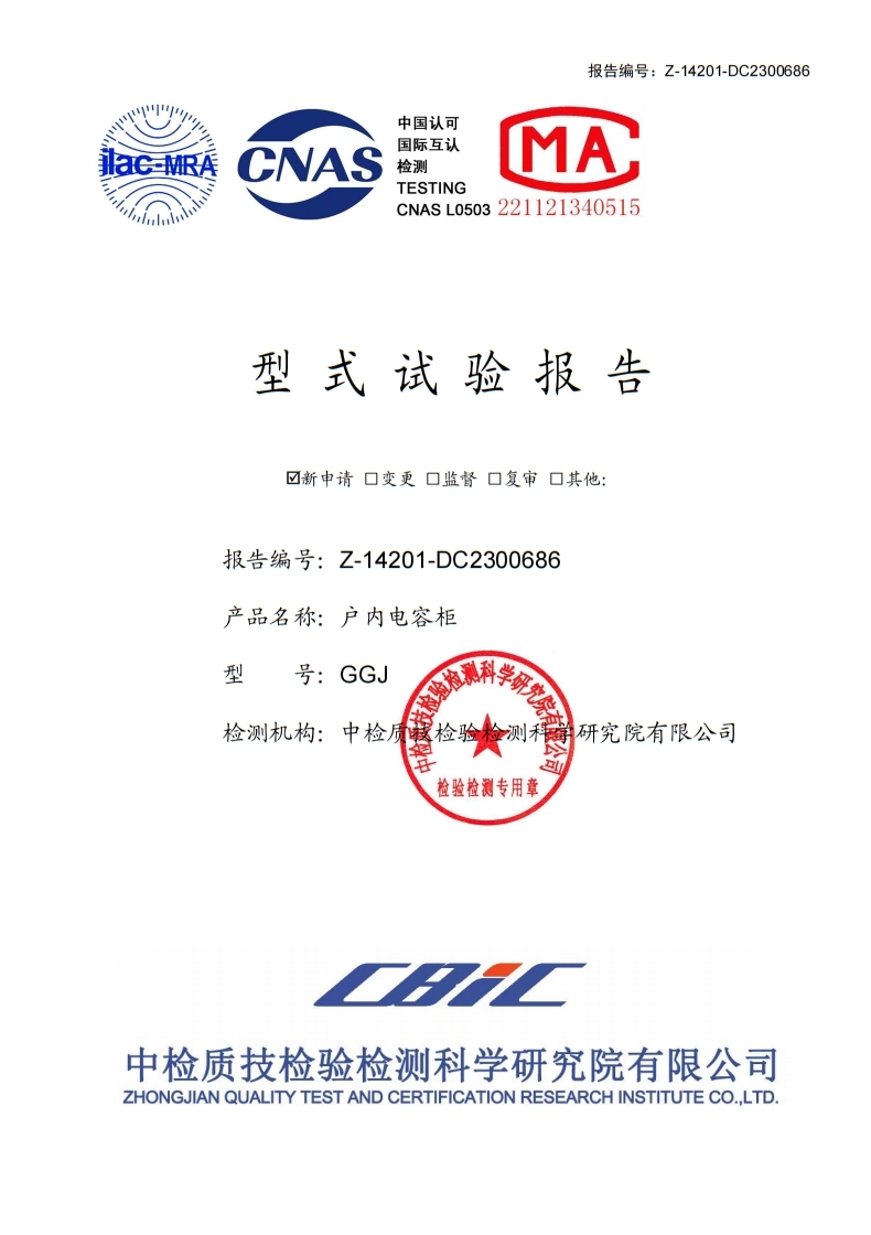 GGJ戶內(nèi)電容柜試驗報告