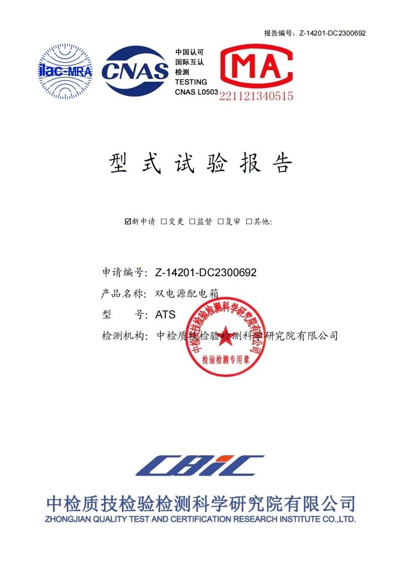 ATS雙電源配電箱試驗報告